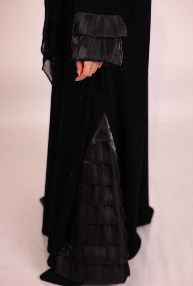 - الأكمام: طبقات شيفون ناعمة تعزز من مظهر العباية وتضيف لمسة من التميز